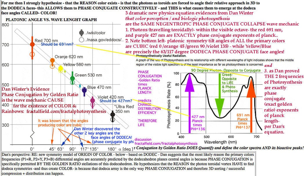 and Dan Winter's work: The Phase Conjugate Golden Ratio wave mechanic which causes the existence of COLOR and RAINBOWs and PHOTOSYNTHESIS: fractalfield.com/fractalphotosynthesis